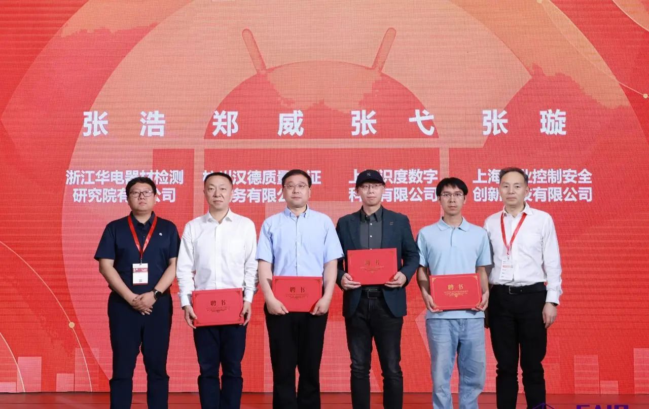 工作组组长郑军奇、副组长刘宇飞为来自浙江华电器材检测星空xk有限公司、杭州汉德质量认证服务有限公司、上海识度数字科技有限公司、上海工业控制安全创新科技有限公司工作组新进成员颁发专家聘书。