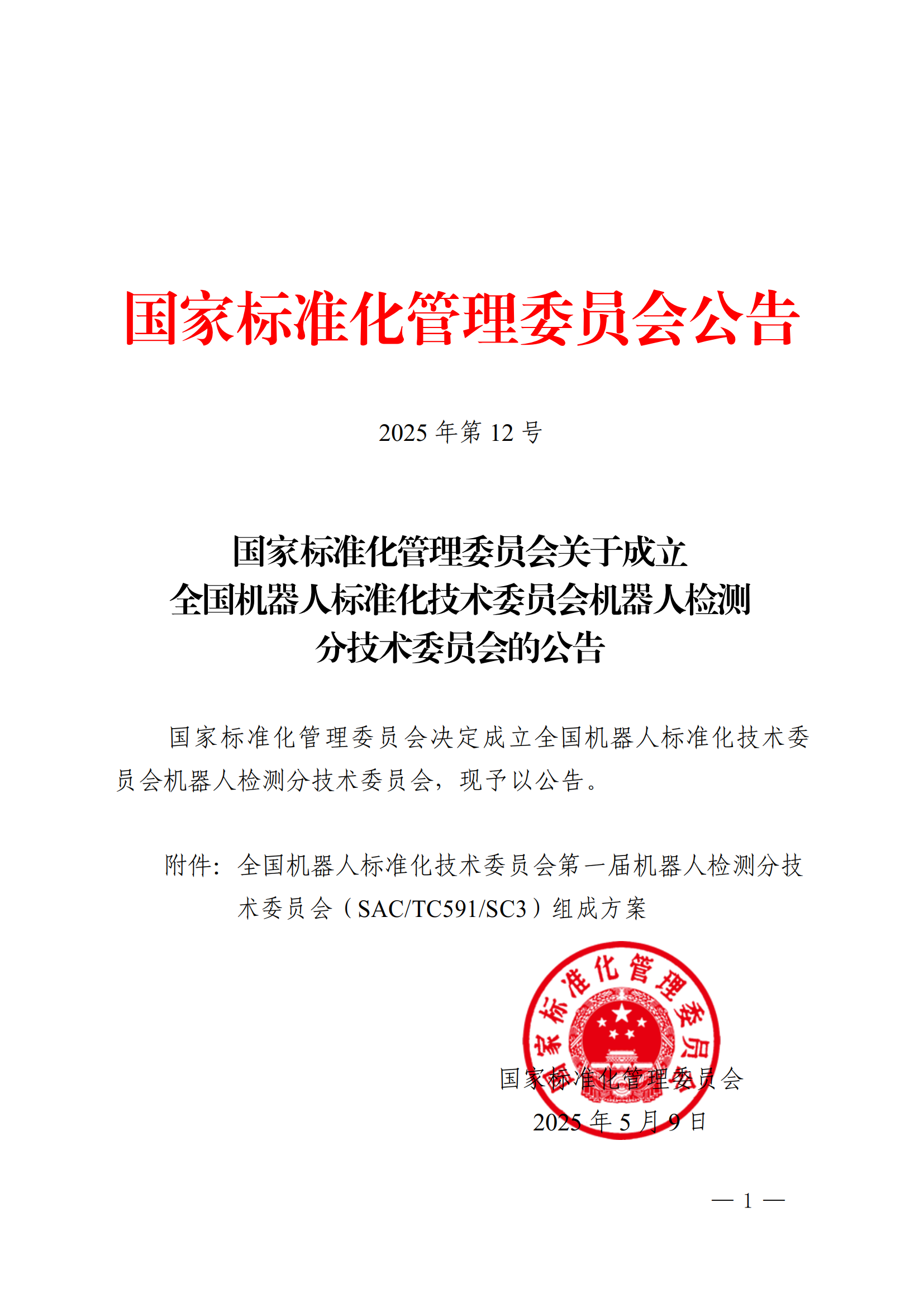 5月9日,国家标准化管理委员会发布《关于成立全国机器人标准化技术委员会机器人检测分技术委员会的公告》,决定成立全国机器人标准化技术委员会机器人检测分技术委员会(以下简称:分技术委员会),主要负责全国机器人检测与评估领域标准化工作,秘书处由上海电器科学星空xk承担,我院专家邢琳任委员兼秘书长。