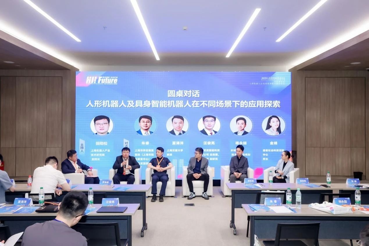 论坛最后,举行了主题为“人形机器人及具身智能机器人在不同场景下的应用探索”的圆桌对话,对话由田劲松主持,上海市养志康复医院辅具资源部主任朱睿、上海交通大学教授夏泽洋、无锡灵奕智能科技有限公司总经理汪俊亮、长城汽车技术品牌与规划总监杨永喆、适老社会科技创新中心负责人金靖围绕人形和具身智能机器人的场景选择与考量因素、应用落地的主要障碍、政府和社会层面可提供的支持举措等话题展开热烈讨论,为产业发展贡献了多元观点。