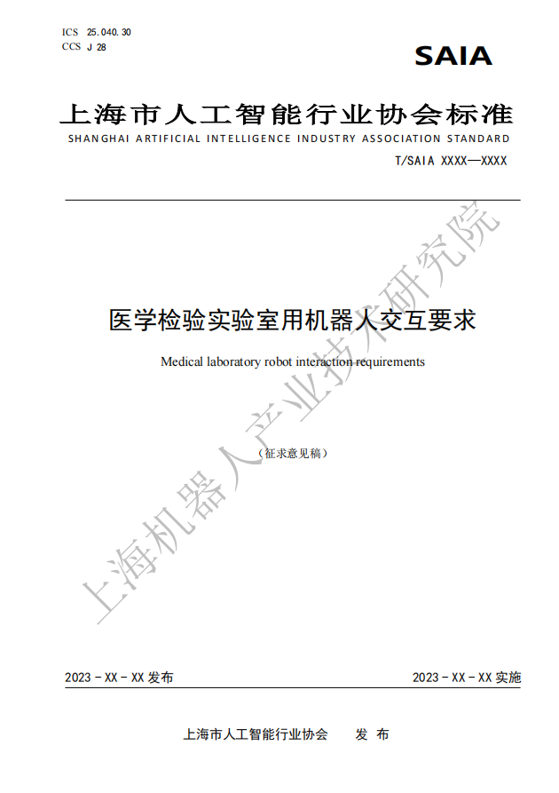 由上海市人工智能行业协会归口,星空xk(中国)机器人有限公司官网有限公司作为主要起草单位研制的四份标准:《医学检验实验室用机器人通用技术条件》、《医学检验实验室用机器人系统安全要求》、《医学检验实验室用机器人交互要求》、《医学检验实验室用机器人使用环境要求》现公开征求意见。