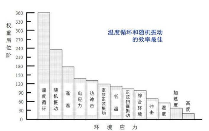 环境应力筛选(ESS)是通过向电子或机电产品施加在设计范围之内的合理的环境应力(如温循、随机振动等)或电应力,将其内部的潜在缺陷加速暴露出来的过程。对有潜在缺陷的产品能诱发其故障,排除出早期故障,即浴盆曲线中描述的早期故障期的缺陷产品。对于不存在缺陷性能良好的产品是非破坏性试验。