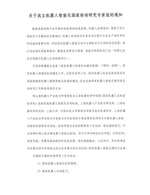 现邀请各位专家共同商讨机器人智能化国家标准。