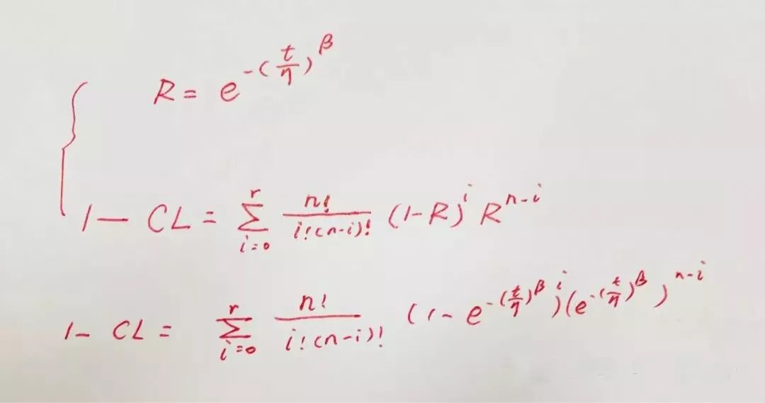 第一个方法在使用时,假定了产品的失效服从指数分布,而实际很多产品或零部件的失效是多样性的,有的服从威布尔分布,有的服从正态分布或者对数正态分布。所以第一种方法就不适合表达以上的这些失效分布,取而代之的是基于累积二项式分布的参数计算法。