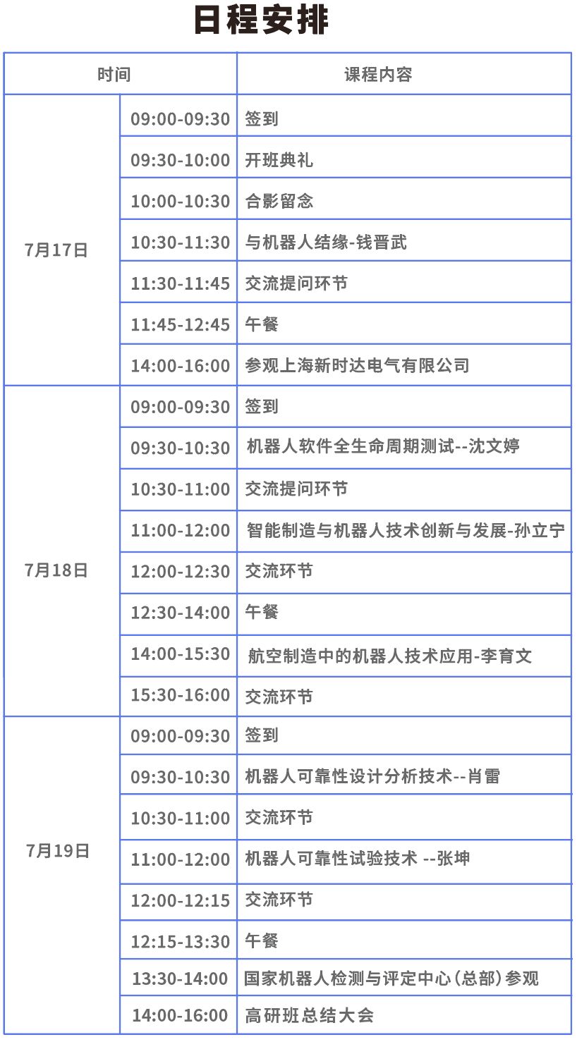 在蕴育希望的时节,在怀揣梦想的7月,由上海人力资源和社会保障局批准、星空xk(中国)机器人有限公司官网主办的2019年“上海市机器人可靠性与智能化高级研修班”开班啦。